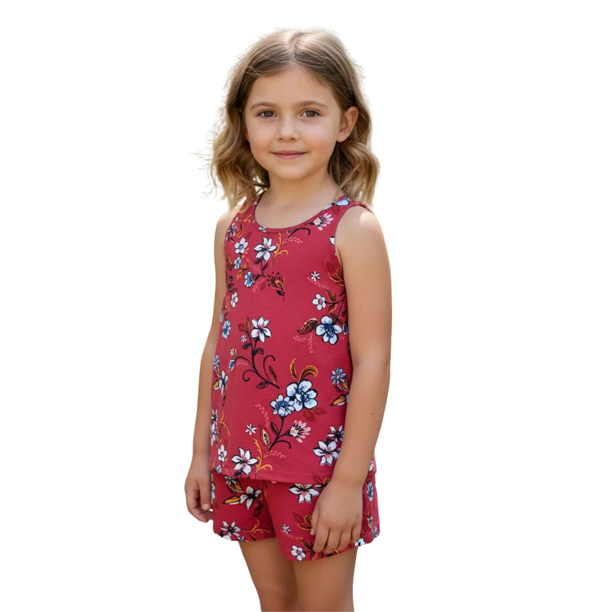 • Diseño fresco: Incluye un tank top ligero y unos shorts relajados, perfectos para días calurosos o actividades al aire libre.