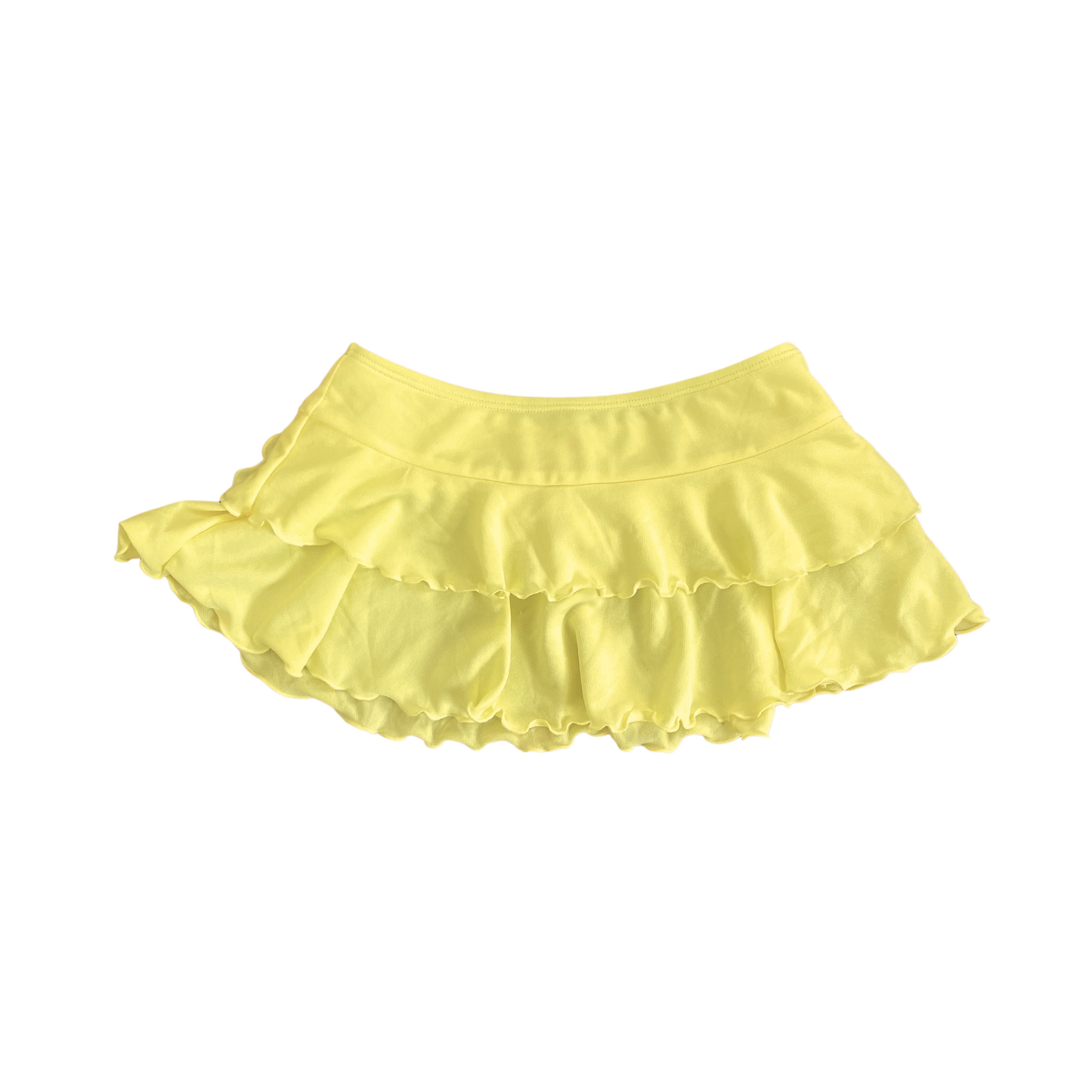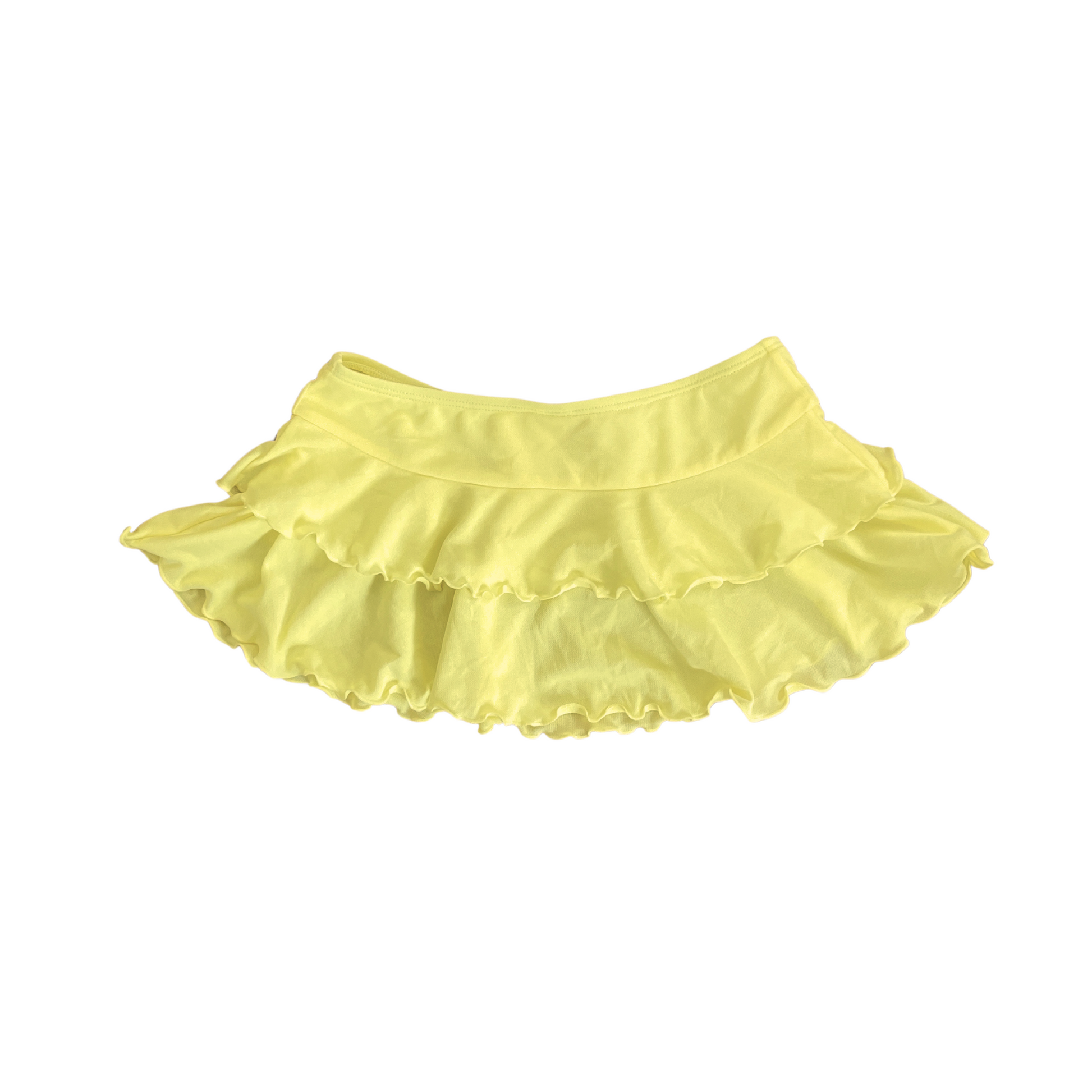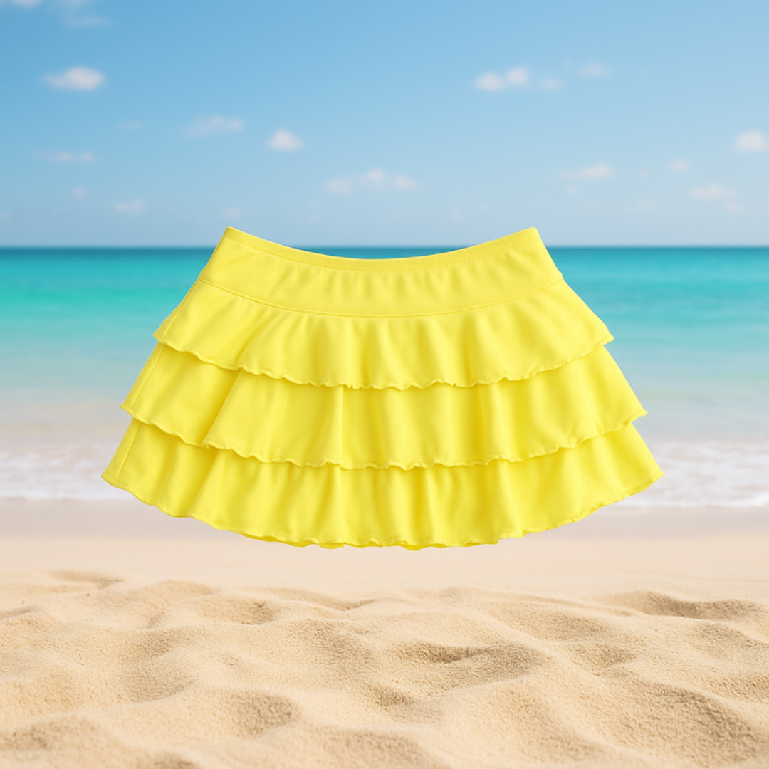 Diseñada en un alegre tono brillante, esta falda cuenta con doble capa de volantes que le dan un toque divertido y femenino.