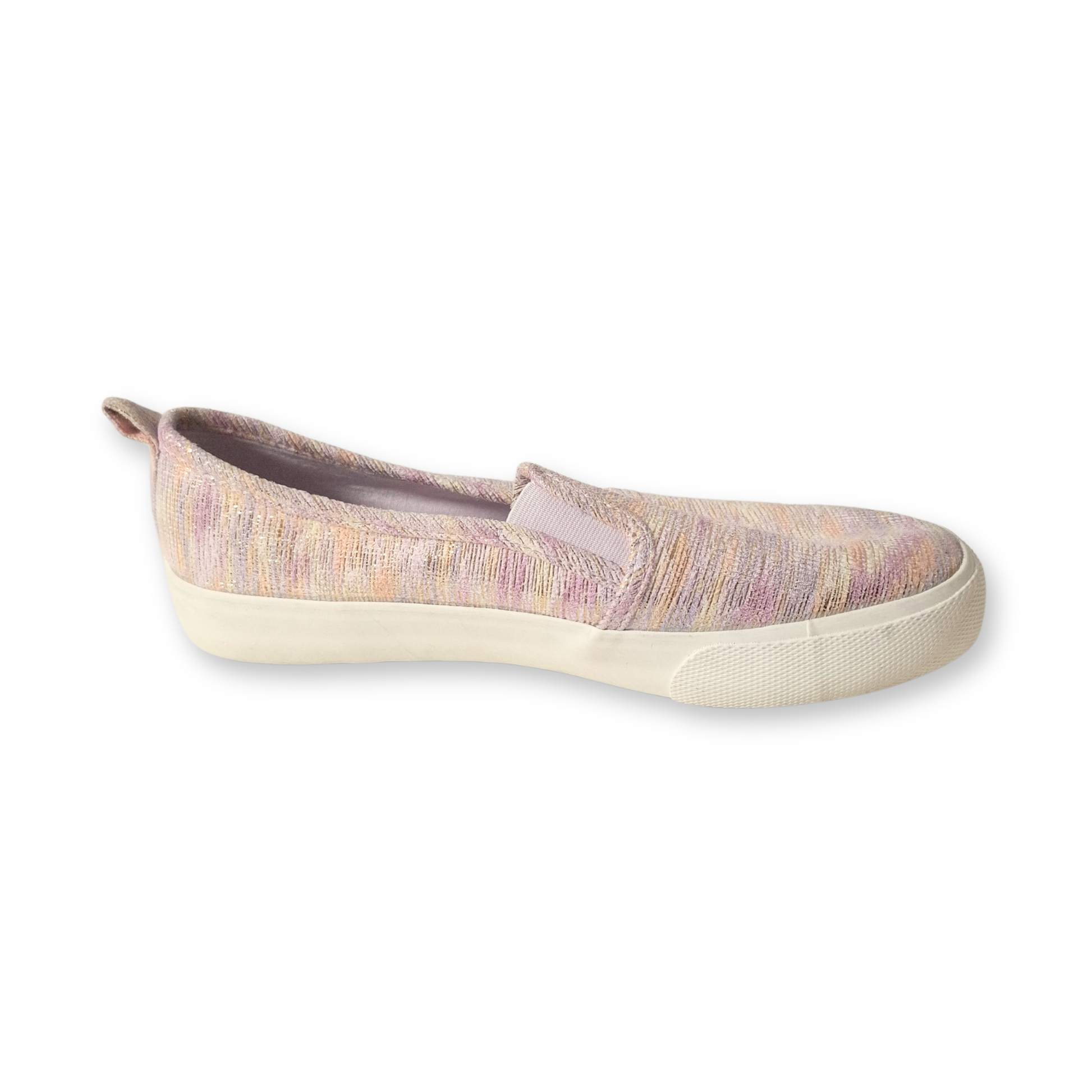 ¡Haz que cada paso brille! Estos tenis tipo slip-on (sin agujetas) de la línea Sariah de Cat & Jack son la combinación perfecta entre un diseño divertido y la practicidad que las niñas necesitan. Con un acabado texturizado en tonos pastel y detalles brillantes, son ideales para complementar cualquier outfit casual o escolar.