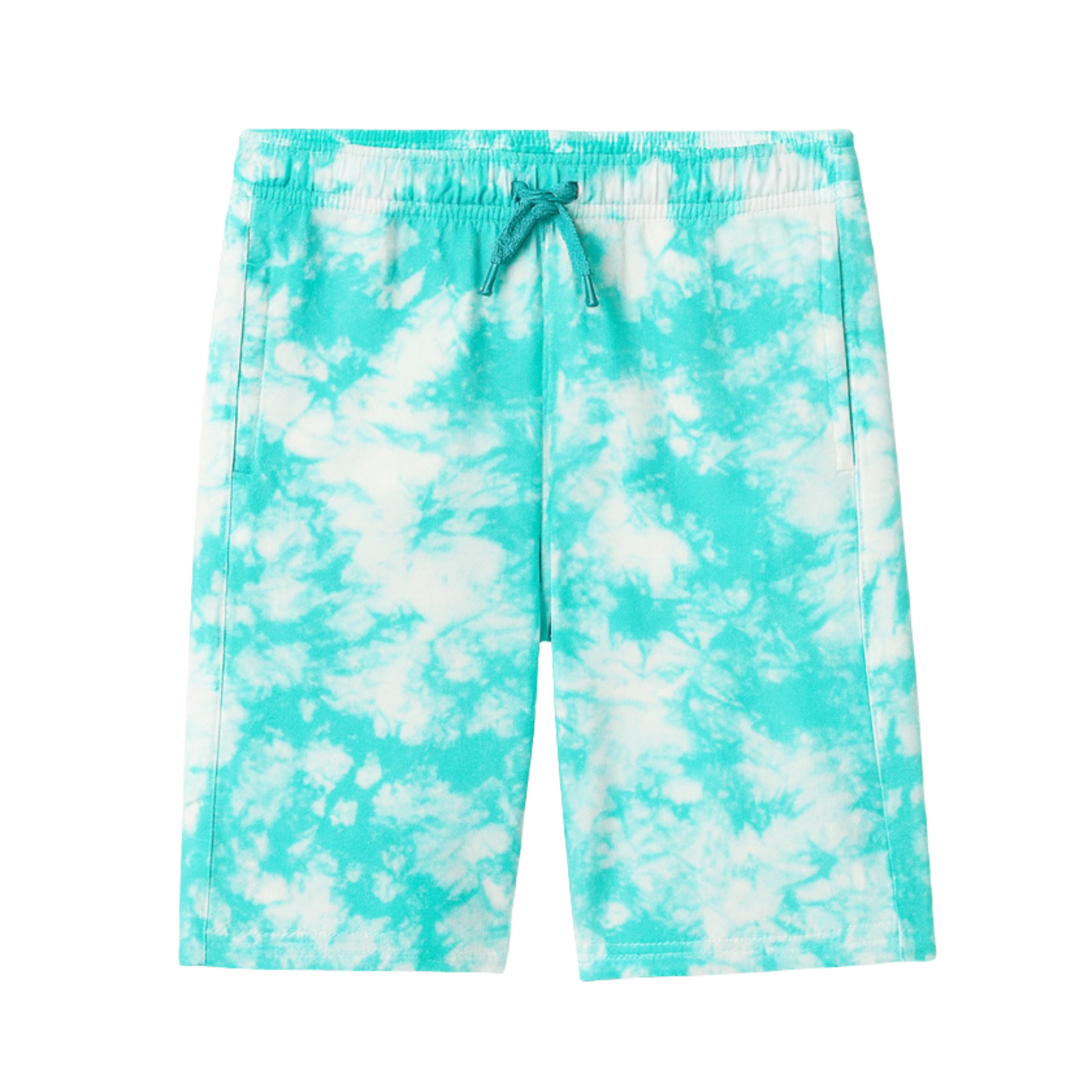 Dale un toque fresco y divertido a su look con estos shorts tie-dye en tonos aqua y blanco. Confeccionados en tela suave y ligera, cuentan con cintura elástica ajustable con cordón para mayor comodidad y bolsillos laterales prácticos. Su diseño relajado los hace perfectos para usar en casa, en el parque o en días de paseo.
